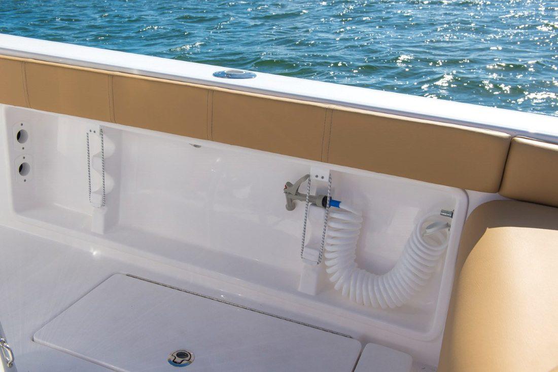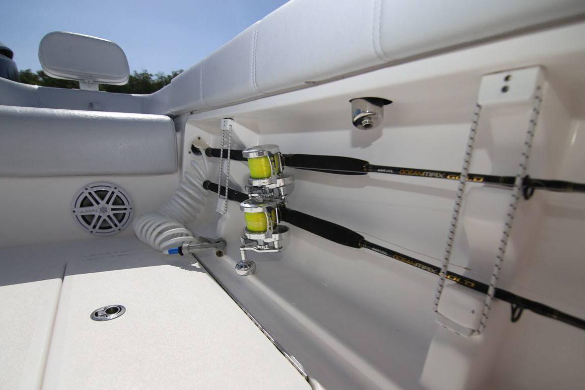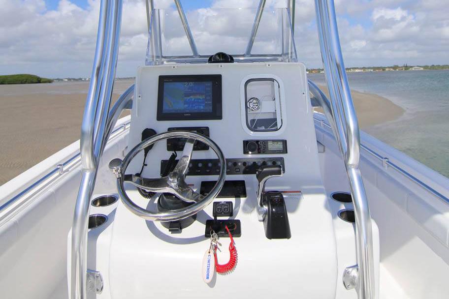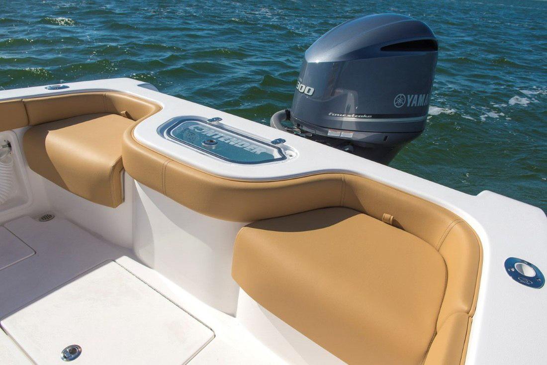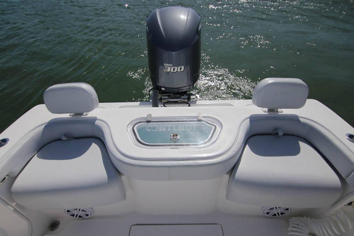 Contender sport series boats are rigged for your needs. Custom options for diving, fishing, and on the water fun makes each Contender unique. The 24S is a great day tripping boat with plenty of range offered from the 130 gallons of fuel capacity and great fuel economy. The 24S gets over 2.5 mpg @ 30mph when powered with a single Yamaha F300.